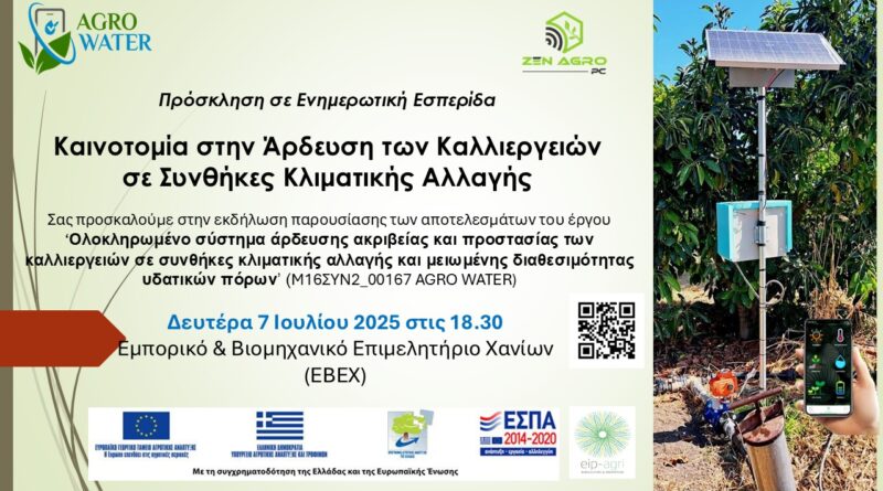 Η πρώτη εκδήλωση, με τίτλο «Βελτιστοποίηση της Άρδευσης αβοκάντο και πορτοκαλιάς με σύγχρονες τεχνολογίες»